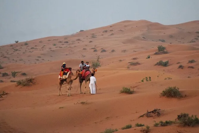 Você vai saltar pelas dunas de Ras Al Khaimah em um 4x4, andar de camelo enquanto o pôr do sol muda as cores do céu, experimentar sandboard e curtir um jantar com churrasco sob as estrelas do deserto com música e dança ao vivo. Pintura de henna e café árabe quente dão um toque local — aqui o importante é se soltar e aproveitar a noite.