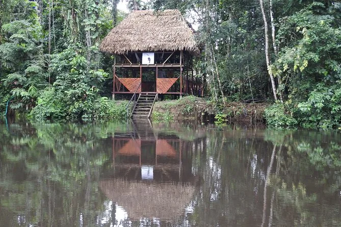 O pacote inclui todos os transfers de Lago Agrio por ônibus e canoa até a Reserva Cuyabeno, bebidas quentes ilimitadas no Tucan Lodge onde você vai dormir, além de botas e capas de chuva para você não precisar se preocupar com equipamentos extras. Um guia local acompanha todas as trilhas e passeios de canoa — e claro, sempre tem alguém por perto para ajudar ou para servir mais uma xícara de café depois do jantar.
