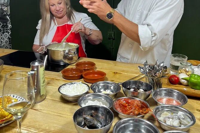 Você vai preparar paella de frutos do mar, tortilla espanhola, crema catalana e provar dez tapas espanholas.
