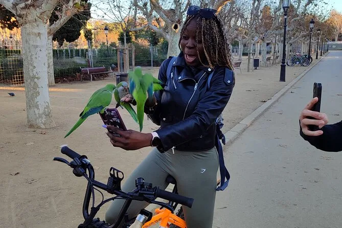 A Marta alternava entre inglês e espanhol (às vezes catalão, quando conversava com os locais), apontando detalhes que eu jamais teria reparado — como os pequenos azulejos de dragão escondidos nos postes perto do Parc de la Ciutadella. Paramos ali por um instante; papagaios gritavam lá em cima e um senhor alimentava patos à beira do lago. O parque é mais verde do que eu esperava para uma cidade desse tamanho. Depois seguimos pedalando pelo prédio do Parlamento e cruzamos ruas laterais rumo à Sagrada Familia. Confesso que ver de perto, de bike, foi diferente — menos aquela coisa de cartão-postal e mais como encontrar algo vivo.