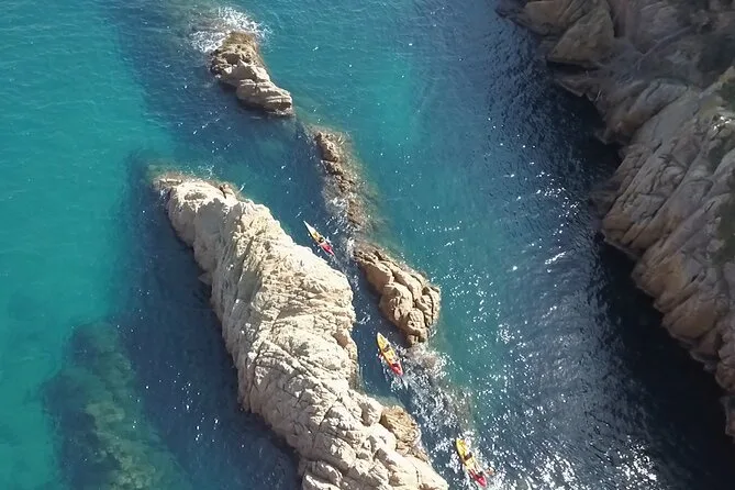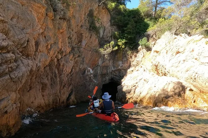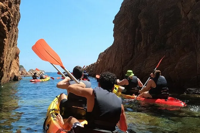 Caiaque nas falésias da Costa Brava, snorkel em cavernas, saltos, nado e almoço à beira do mar