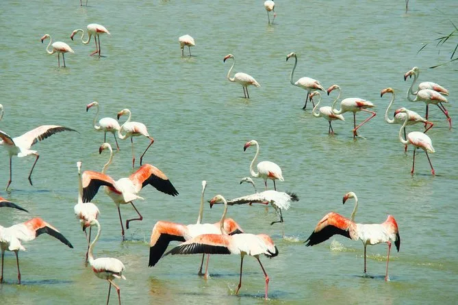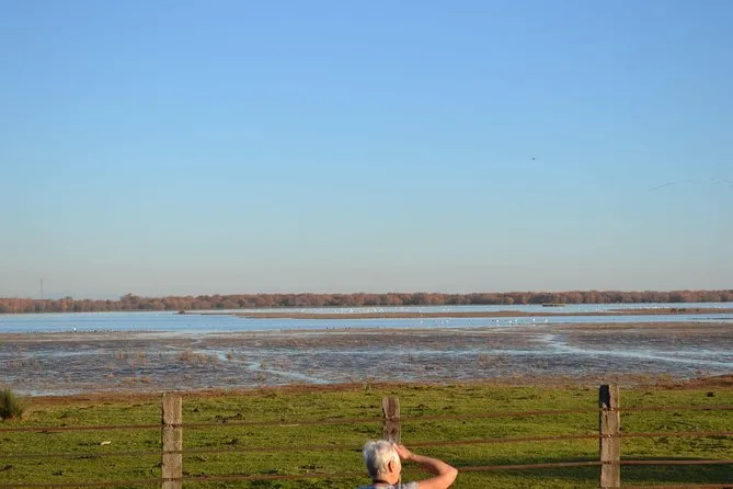 Seu dia inclui traslado do hotel em pontos centrais de Sevilha, todo o transporte em veículo 4x4 com guia profissional em cada parada—desde os pântanos cheios de aves perto de Puebla del Río até as ruas de areia da vila de El Rocío—e uma pausa para almoço com pratos regionais antes do retorno à noite.