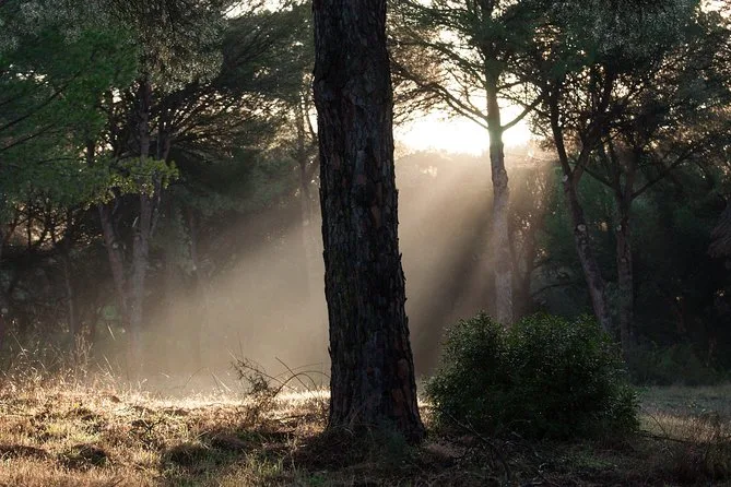 O Palacio del Acebrón era mais fresco por dentro do que eu esperava—paredes de pedra e um eco suave quando você andava. Fizemos uma caminhada curta ali perto; o Javier mostrou pegadas de animais na areia (lince? Talvez). O almoço foi simples, mas gostoso: um cozido local com pão que deixou farinha nos meus dedos. O sol já tinha mudado de posição e tudo ao redor das dunas estava dourado. No caminho de volta pela parte florestal de Doñana, todo mundo ficou quieto de novo—acho que na esperança de ver um lince. Não vimos nenhum, mas alguém avistou uma tartaruga cruzando o caminho e a gente vibrou por esse pequeno guerreiro.