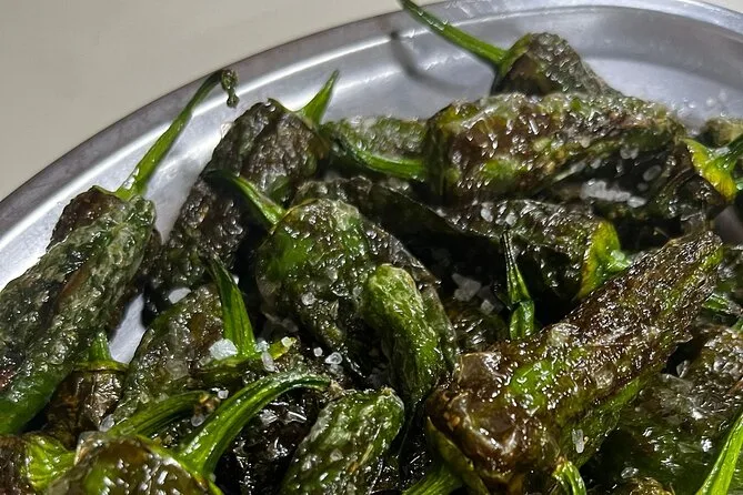 Depois seguimos para uma das grandes praças de Santiago — aquela com a porta santa e o velho relógio que todo mundo aponta. Marta contou uma história sobre um monge fantasma (ela jura que é verdade), e eu me peguei olhando para as pedras enquanto ela falava. As badaladas tocaram bem na hora, o que deixou tudo meio mágico. Seguimos para outro bar perto do Museu das Peregrinações, onde serviram uns pimentinhos verdes — alguns suaves, outros ardidos — e a galera da mesa começou a apostar quem pegaria o mais quente. Eu perdi. Minha boca queimou por uns cinco minutos, mas foi engraçado demais.