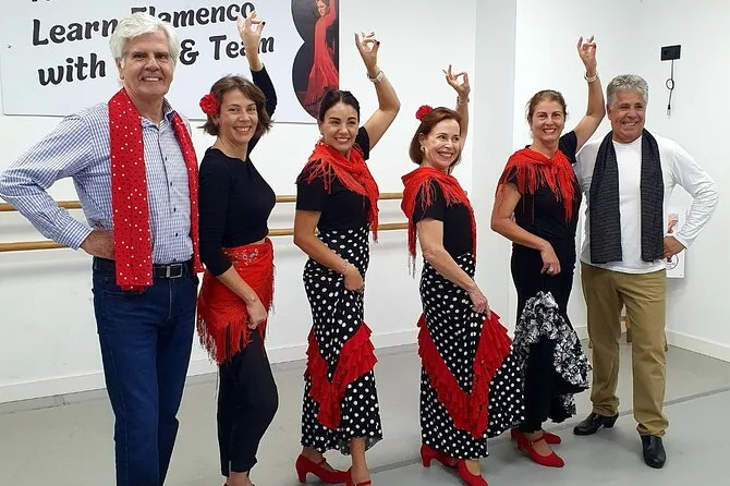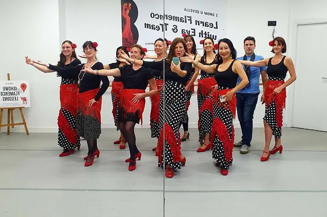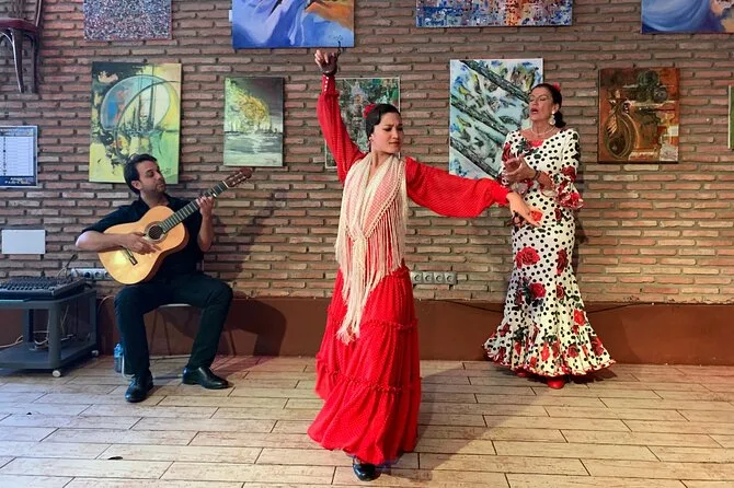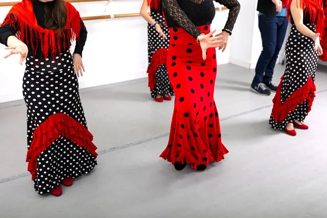 Sua experiência inclui uma aula de flamenco de uma hora em estúdio profissional em Triana, com instrutores locais que guiam cada passo; acessórios como xales e lenços são distribuídos para ajudar você a entrar no clima; aluguel opcional de figurinos completos (sapatos, saias ou coletes) está disponível no local por uma pequena taxa extra, caso queira se vestir ainda mais a caráter.