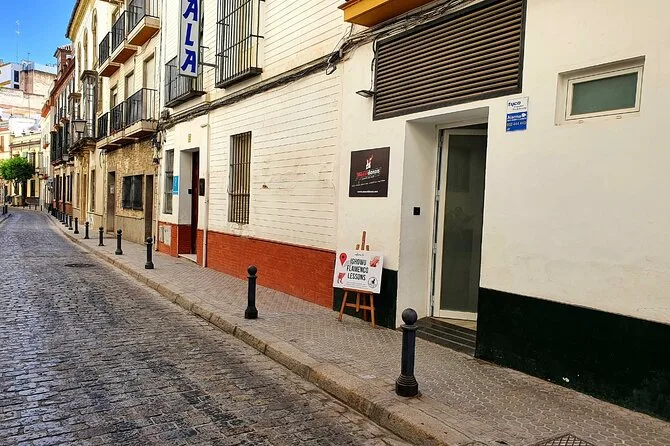 A aula é em um estúdio profissional de flamenco em Triana, bem no centro de Sevilha.