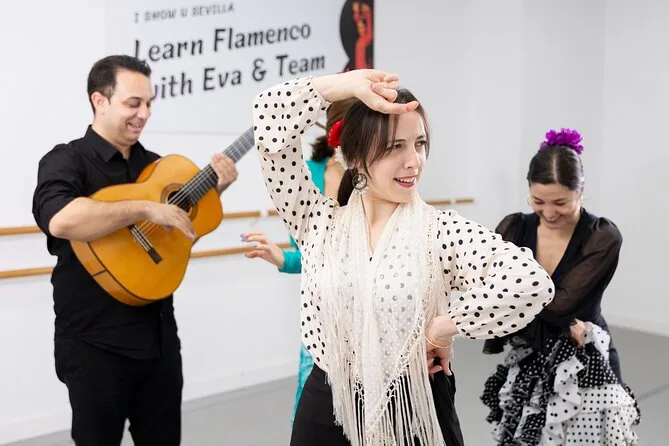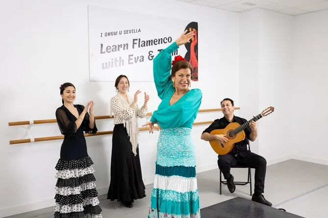 Entre em um estúdio autêntico em Triana, conheça dançarinos locais como a Eva, envolva-se em xales coloridos e aprenda o básico do flamenco, mesmo sem experiência. Experimente figurinos opcionais ou use os acessórios disponíveis. Prepare-se para risadas, música refletindo nos espelhos e, quem sabe, encontrar seu próprio ritmo (ou pelo menos se divertir tentando).