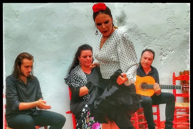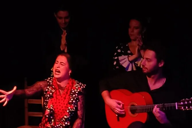 Sua noite inclui entrada no Tablao Flamenco Pura Esencia em Triana para um show ao vivo de uma hora com cantor, guitarrista e dois bailarinos (bailaor e bailaora), além de um copo de vinho espanhol (Rioja tinto ou Rueda branco), cerveja local ou sangría de cortesia antes de você se acomodar à beira do rio Guadalquivir.