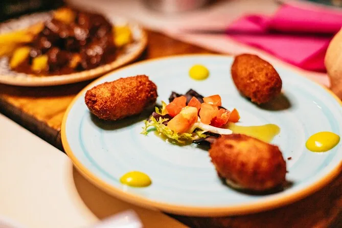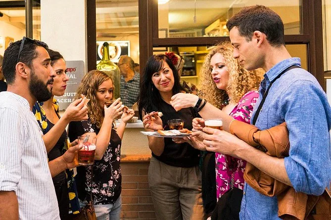 Explore as ruas mais tranquilas de Sevilha com um guia local neste roteiro noturno de tapas—quatro bares autênticos, dez pratos regionais (com porco e peixe fresco) e bebidas em cada parada. Risadas com moradores, histórias de cada bodega e aquela sensação única de comida unindo estranhos por algumas horas.
