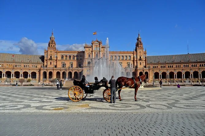 Você verá a Catedral de Sevilha (externo), o Alcázar Real (externo), Plaza de España, Real Fábrica de Tabacos, Archivo General de Indias e outros.