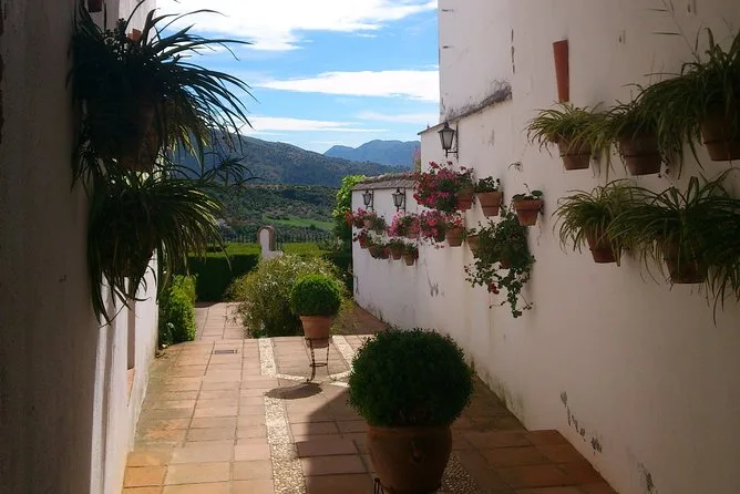 Você vai sair de Sevilha por estradas de montanha para explorar três aldeias brancas com um guia local, provar azeite fresco num moinho tradicional, almoçar entre ruas floridas de azul e terminar o dia atravessando a ponte lendária de Ronda ao pôr do sol — momentos para guardar para sempre.