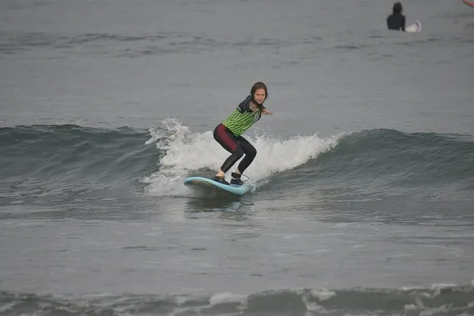 Começamos pela teoria — ficar em pé na prancha em terra firme, o que parecia meio bobo até Marta mostrar como os pés realmente fazem toda a diferença. Tinha areia por todo lado; meus dedos enterravam na areia toda vez que eu tentava equilibrar. O sal no ar deixava tudo mais intenso de alguma forma. Quando finalmente entramos no Atlântico, tomei uma onda na cara logo de cara — nada elegante — mas Marta me incentivou na mesma hora (“¡Muy bien!”). A água estava mais fria do que eu esperava, mas não incomodava quando você estava em movimento.