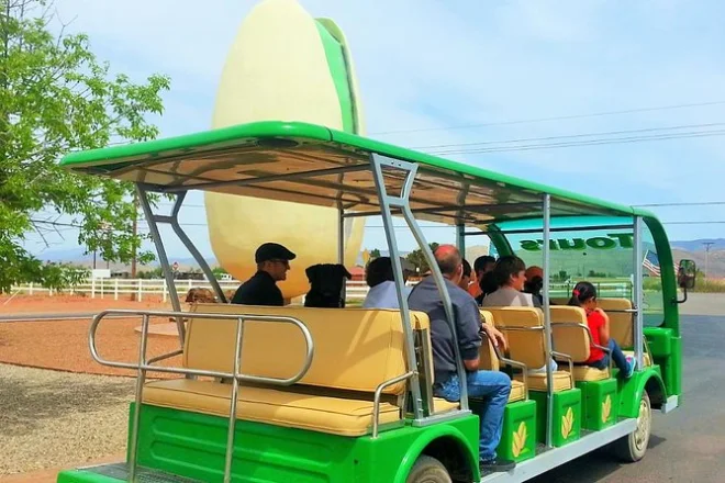 Seu dia inclui um passeio em veículo elétrico aberto pelos pomares de pistache e vinhedos de Alamogordo com um guia local contando histórias; depois, você prova pistaches torrados na hora, doces e vinho grátis para maiores de 21 anos antes de seguir viagem.
