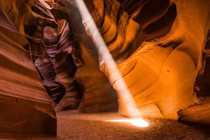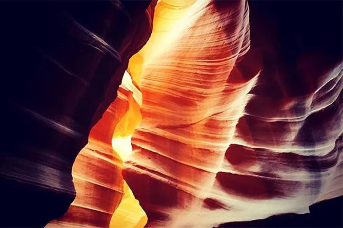 Seu dia inclui busca e retorno no Treasure Island Las Vegas, todos os ingressos para Antelope Canyon (com guia Navajo) e Horseshoe Bend, água engarrafada durante todo o passeio, WiFi grátis no ônibus para compartilhar fotos ou checar mensagens, transporte com ar-condicionado para seu conforto nas longas distâncias entre Arizona e Utah, além de almoço servido no meio do dia antes do retorno para Vegas à noite.