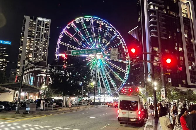 Quais atrações são visitadas no tour noturno em Atlanta?