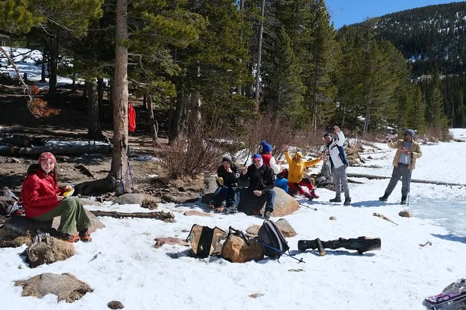 Às vezes, quando a neve está bem compactada, trocamos as raquetes por microcrampons — sinceramente, eles são mais fáceis para caminhar depois de um tempo. Mike sempre traz extras de tudo: bastões de caminhada, garrafas de água, até salgadinhos e sanduíches para o almoço (nada sofisticado, mas a comida parece sempre mais gostosa ao ar livre). Normalmente paramos na metade do caminho para um lanche rápido; lembro que uma vez meu sanduíche quase congelou antes que eu conseguisse terminar! Depois do almoço, é quase todo descida até a van e então voltamos para Denver, com as pernas sentindo aquela fadiga boa.