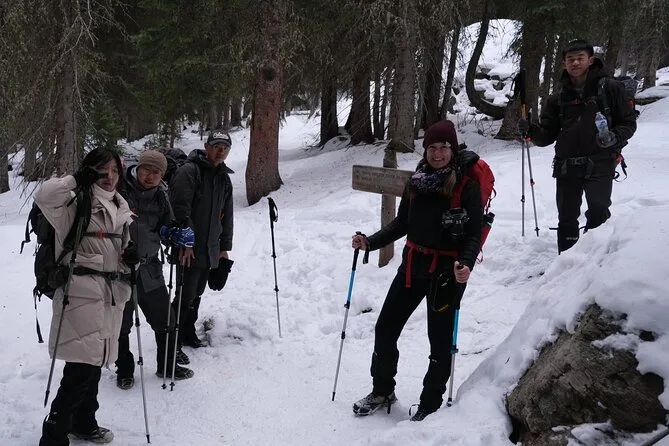 Você terá à disposição raquetes de neve (todos os tamanhos), bastões de caminhada, polainas para evitar que a neve entre nas botas, água engarrafada e almoço na trilha — tudo fornecido pelo seu guia para que você só precise se preocupar em aproveitar o dia.