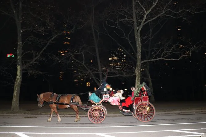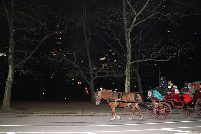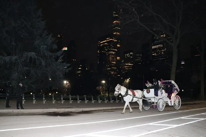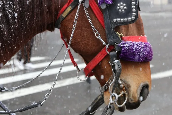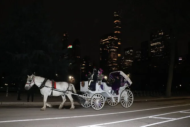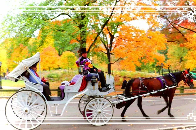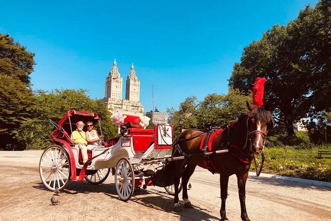 Seu passeio inclui tudo: embarque no Columbus Circle ou pontos próximos no Central Park, paradas para fotos com seu guia licenciado (que ainda tira as fotos pra você, se quiser), cobertores quentinhos nos dias frios, petiscos para os cavalos, todos os impostos e taxas já inclusos — e espaço para até quatro adultos por charrete, pra você curtir com amigos ou família sem pagar a mais.