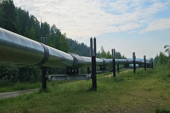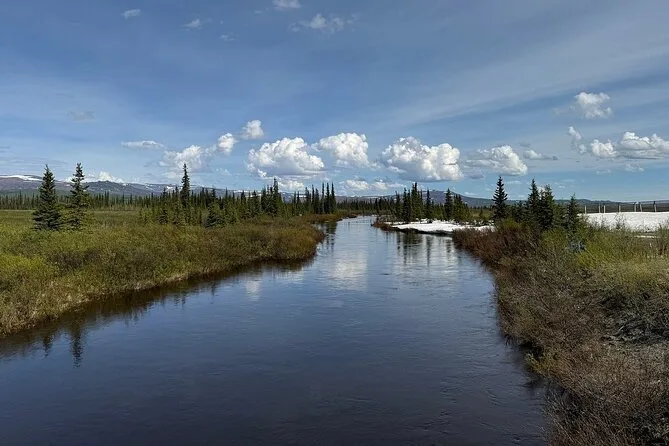 Vou ser sincero, não esperava me sentir tão pequeno só de pegar a estrada rumo ao norte de Fairbanks. A paisagem não muda de repente — ela vai se abrindo devagar, as árvores ficam mais ralas, o céu mais amplo. Nosso guia, Sam (que cresceu em North Pole — sim, esse lugar existe de verdade), começou a mostrar detalhes que eu teria perdido: como o oleoduto serpenteia pela estrada, ou a mudança da luz quando cruzamos para o verdadeiro território ártico. Ele contava as histórias de um jeito tranquilo — na medida certa, nada forçado. Só o suficiente para me fazer olhar duas vezes para tudo lá fora.