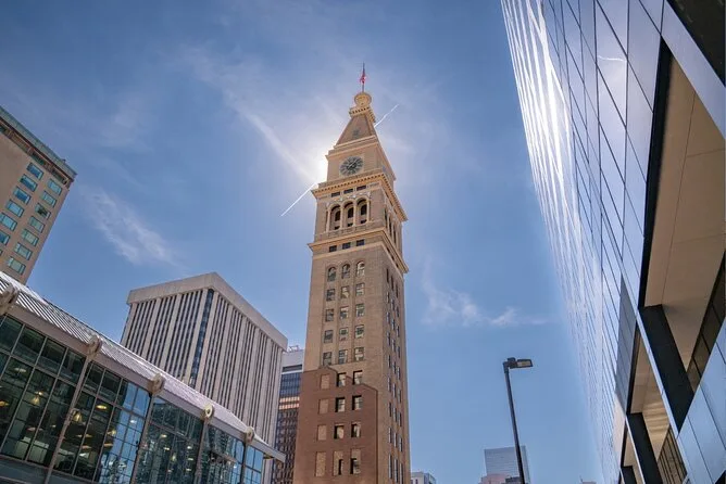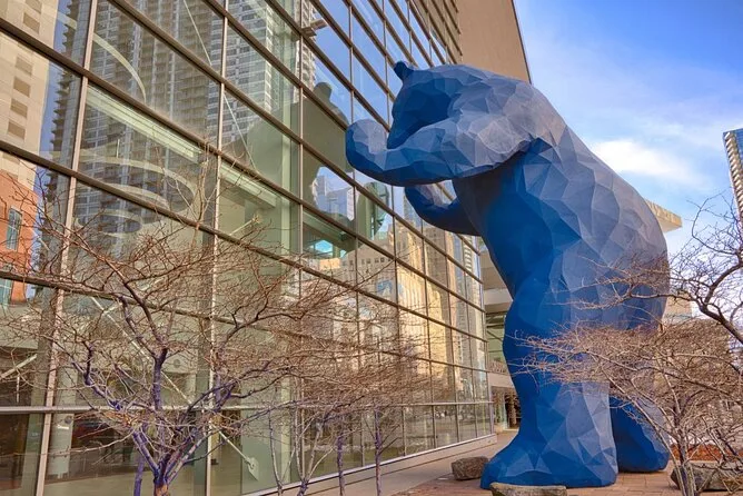 Seu dia inclui acesso ao app Explorial para uma caça ao tesouro e tour a pé autoguiado pelo centro de Denver — é só baixar depois da reserva e usar seu código para começar quando quiser.