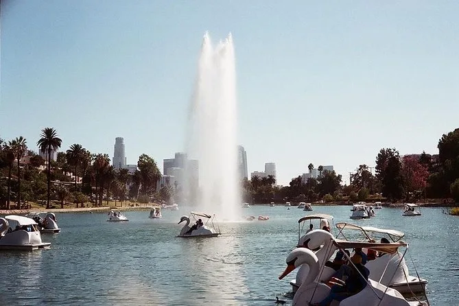 Você vai deslizar pelo Echo Park Lake em um pedalinho cisne espaçoso, pedalando entre as flores de lótus e sob sombras refrescantes, com vista para a cidade ao redor. Pode levar seus próprios lanches e bebidas (só não pode álcool) e curtir momentos tranquilos na água—coletes salva-vidas estão inclusos para sua segurança. Um passeio leve que fica na memória muito além do esperado.