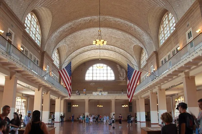 Se você escolher o tour completo (como nós fizemos), pega o ferry de volta para Ellis Island. A travessia é rápida e silenciosa; até as crianças pararam de mexer enquanto nos aproximávamos. Lá dentro, você fica livre para explorar com um áudio guia, que me ajudou a desacelerar e prestar atenção. O salão principal tem um eco especial — chão duro, teto alto — que faz tudo parecer maior do que a vida. Fiquei pensando nos nomes gravados no Muro da Honra lá fora; vi uma mulher passando o dedo em um nome enquanto o filho perguntava se a família deles estava ali também.