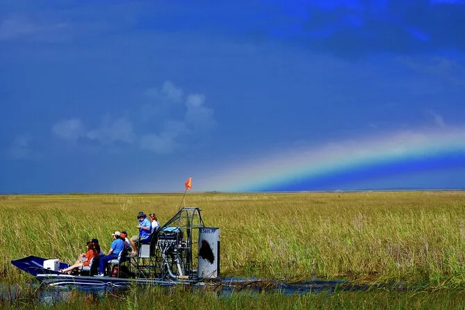 Deslize pelo Rio de Grama em um passeio privado de airboat guiado por um capitão naturalista local. Ouça os cantos dos pássaros e aviste jacarés enquanto seu guia conta histórias que só quem vive aqui conhece. Inclui água gelada, fones confortáveis, coletes salva-vidas para todos — até para crianças — e várias paradas para sentir a natureza selvagem dos Everglades.