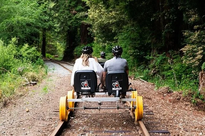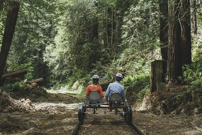 Seu dia inclui o uso de railbikes elétricas nos trilhos históricos perto de Fort Bragg, água engarrafada para manter você hidratado enquanto pedala sob as redwoods do estuário do Pudding Creek, além de capacetes (ou leve o seu) para garantir segurança durante todo o trajeto.
