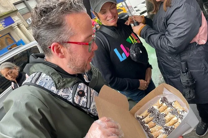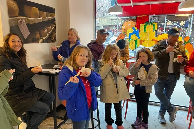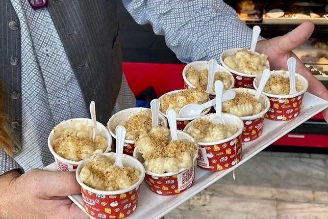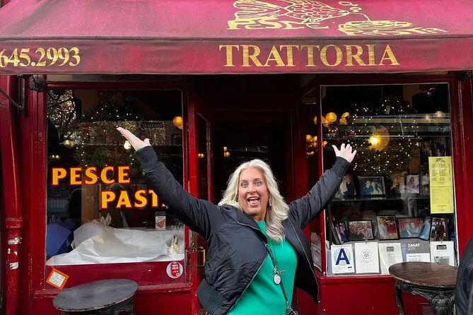 Seu dia inclui todas as degustações especiais — de mac & cheese a cannoli — com um guia licenciado de NYC mostrando pontos do West Village como Cornelia Street e o prédio de Friends; substituições vegetarianas ou sem glúten disponíveis se avisadas antes; além de degustações em ambientes fechados para seu conforto, faça chuva ou faça sol.