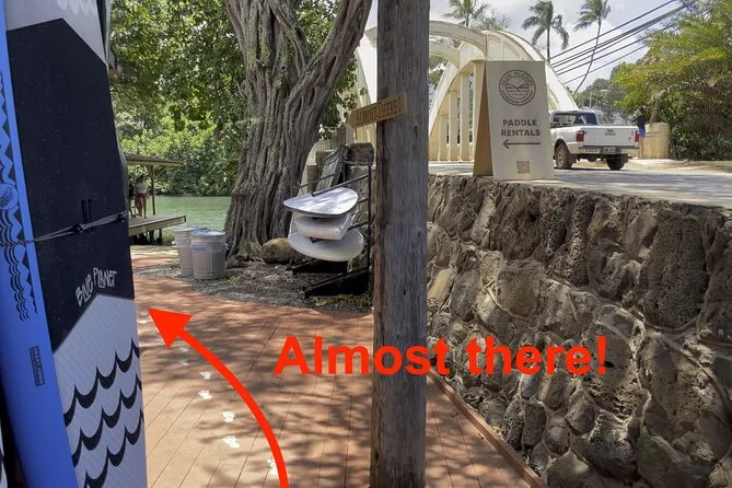 Seu passeio de duas horas inclui o uso de uma prancha de stand up paddle premium ou caiaque individual (você escolhe), remo e leash, além do colete salva-vidas se quiser. Você terá acesso exclusivo à área privativa da Blue Planet Adventure Co. no Rio Anahulu, com entrada fácil na água, além de ducha quente e banheiro para usar depois de explorar a Baía de Haleiwa.