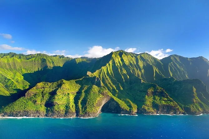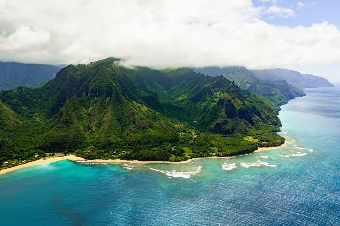 Sobrevoe a lendária Costa Na Pali e o Waimea Canyon em um passeio de helicóptero com portas abertas saindo de Lihue, guiado por um piloto local que conta histórias que só quem mora na ilha conhece. Crianças são bem-vindas — o passeio é perfeito para famílias ou quem quer vistas incríveis sem se sentir exposto. Prepare-se para cachoeiras, cores vibrantes, música no fone e momentos inesquecíveis.