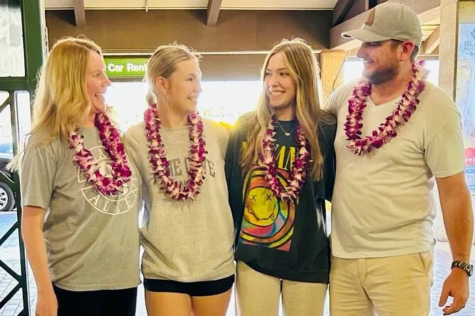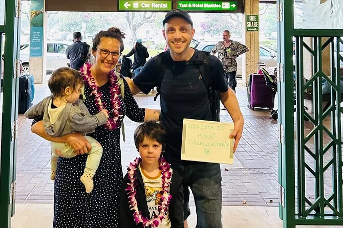 Sua chegada inclui um colar fresco de orquídeas — ou de noz kukui ou doces, conforme sua preferência — uma foto de lembrança tirada com seu próprio celular ou câmera no Aeroporto de Lihue, além de acessibilidade para cadeirantes e famílias com carrinhos de bebê.