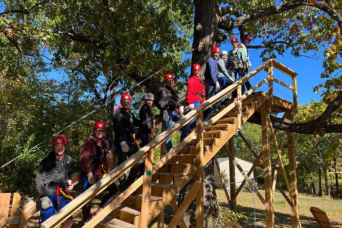 Você vai voar por oito tirolesas sobre as colinas arborizadas do Lake of the Ozarks, atravessar uma ponte de madeira que balança e se divertir com guias locais que conhecem cada árvore pelo nome. Todo o equipamento de segurança e água engarrafada estão incluídos — só precisa trazer sapatos fechados e um pouco de coragem.