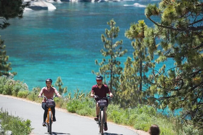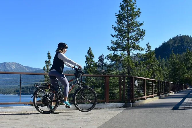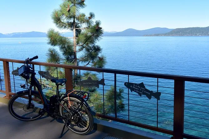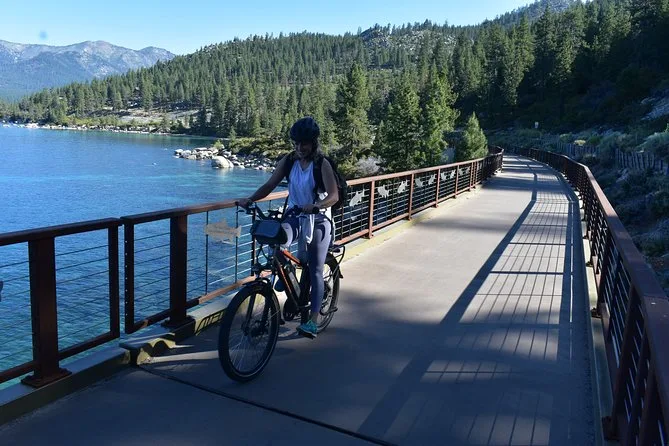 Seu dia inclui o uso de uma e-bike equipada com capacete e cadeado para segurança, além de um bagageiro com elástico — perfeito para levar lanches ou roupas extras sem complicação antes de devolver a bike em Incline Village.