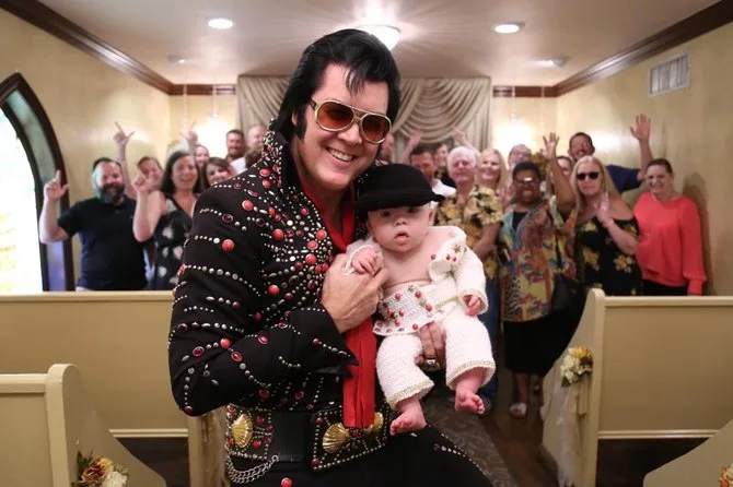 Você vai rir durante toda a caminhada enquanto Elvis te canta na Graceland Wedding Chapel em Las Vegas. Com traslado de limusine do hotel, flores frescas, fotógrafo profissional e o próprio Rei te acompanhando, essa cerimônia é divertida e cheia de emoção. Você sai com fotos, lembranças e, provavelmente, confete nos sapatos.
