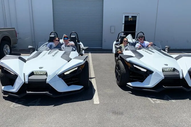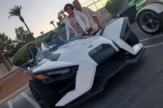 Você vai sair de Las Vegas em um slingshot fácil de dirigir, seguindo a Highway 159 ao lado das cores vibrantes do Red Rock Canyon com um guia local. Dá tempo de explorar Blue Diamond para fotos e histórias antes de voltar sob o imenso céu do deserto. Diversão simples — vento no rosto, poeira nos pés e quem sabe até um aceno de quem chama esse lugar de casa.