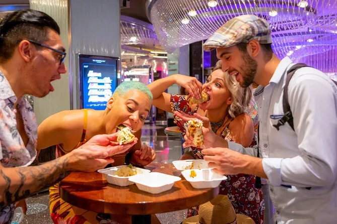 Você vai explorar resorts icônicos da Las Vegas com um guia local que conhece todos os atalhos e histórias. Prove quatro pratos selecionados — de sanduíches gigantes a gelato doce — enquanto percorre rotas secretas internas e lobbies cheios de arte. Prepare-se para risadas, sabores inesperados e um toque da magia clássica de Vegas.