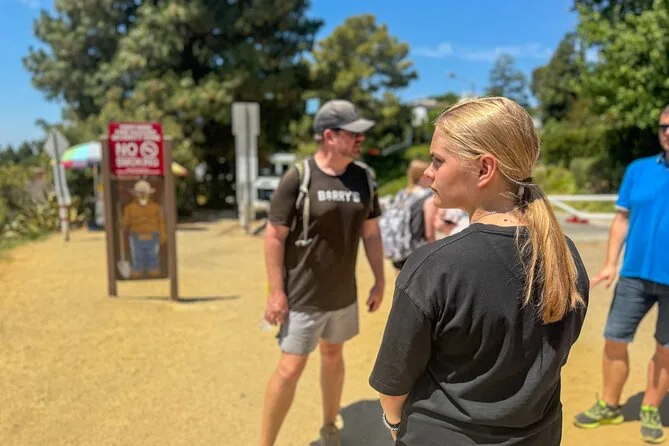 Seu dia inclui uma caminhada guiada de 90 minutos com um guia local certificado em primeiros socorros (procure o colete neon), várias paradas para fotos — com ajuda para fotos no TikTok ou Instagram se quiser — estacionamento grátis na rua próximo (confira as placas), além de dicas de especialistas sobre o que fazer em LA antes ou depois do passeio.