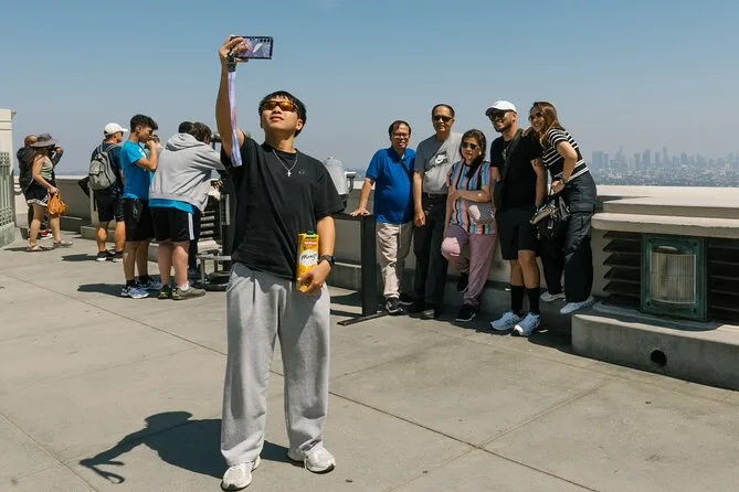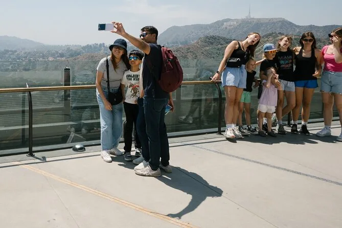 Seu dia inclui transporte confortável em mini-van com ar-condicionado e um guia especialista mostrando os principais pontos de LA. São três paradas principais: caminhada na Hollywood Walk of Fame, pausa para almoço no The Grove & Farmers Market (comida não incluída) e vistas panorâmicas no Griffith Observatory antes de voltar para Santa Monica.