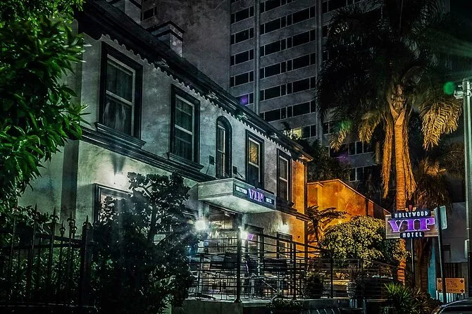 Sua noite inclui um passeio guiado pelos locais mais assombrados de Hollywood com histórias reais e pesquisadas do passado paranormal de LA; o guia compartilha relatos documentados em cada parada por um caminho acessível — sem preocupações com escadas ou calçadas difíceis.