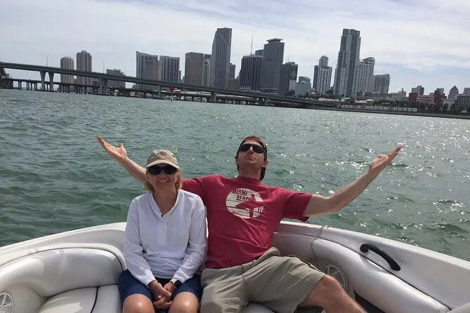 Seu dia inclui um passeio totalmente privado de lancha rápida com guia local pela Biscayne Bay, água mineral gelada em cooler a bordo (e você pode levar suas próprias bebidas), além de paradas para nadar ou relaxar em bancos de areia ou ilhas antes de voltar para a margem quando quiser.