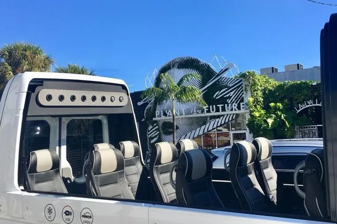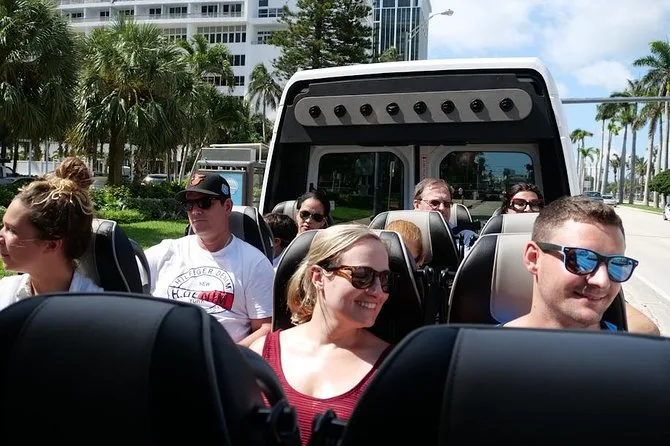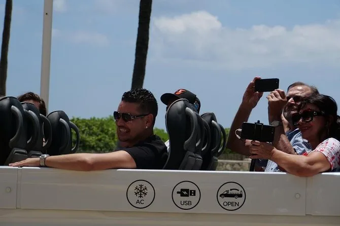 Seu ingresso inclui o passeio panorâmico de ônibus com teto de vidro retrátil, carregador USB no assento, ar-condicionado para os dias quentes de Miami e um guia simpático que conta histórias em inglês, francês ou espanhol. As paradas são em South Beach, Downtown/Brickell, Little Havana (com tempo para explorar), Wynwood (incluindo Wynwood Walls) e Miami Design District.