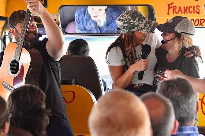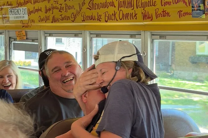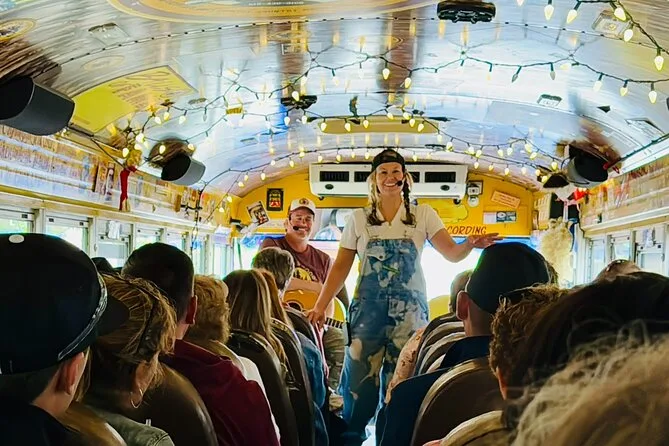 Seu ingresso inclui todas as taxas e seu lugar no ônibus para 1h30 de comédia e cantoria country pelo centro de Nashville e Music Row — com apresentações ao vivo de um anfitrião premiado que te guia a cada passo (e sim, com humor adulto incluso).