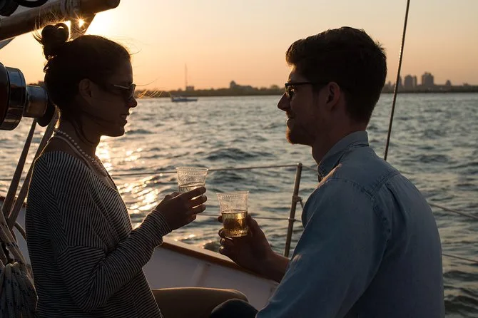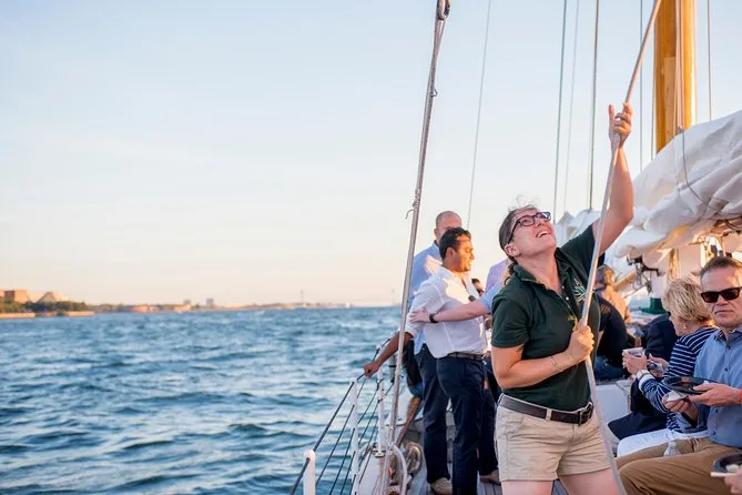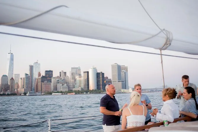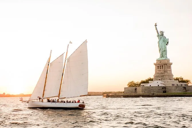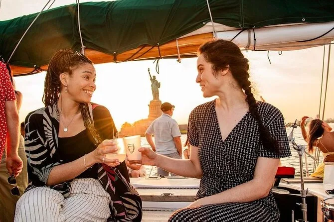 Sua noite inclui um passeio a bordo de um schooner de 24 metros com uma equipe local simpática, navegando pelo skyline de Manhattan, passando por Ellis Island e bem perto da Estátua da Liberdade ao pôr do sol — além de uma bebida cortesia para curtir a vista do porto antes de voltar ao cais perto do Battery Park.