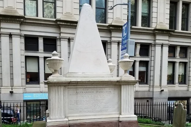 Confesso que achei que já sabia a história depois de assistir Hamilton na Broadway — mas caminhar por aquelas ruas em Lower Manhattan foi outra experiência. Nosso guia distribuiu uns aparelhinhos de áudio (pareciam meio esquisitos no começo, mas nos salvaram do barulho da cidade), e de repente estávamos em frente ao Federal Hall, ouvindo “My Shot” enquanto as pessoas passavam apressadas pela Wall Street. Foi estranho e emocionante — parecia que a cidade ainda discutia consigo mesma, só que agora mais silenciosa.