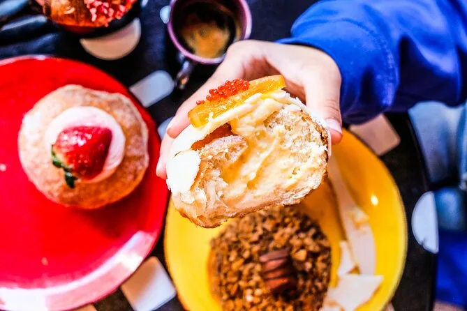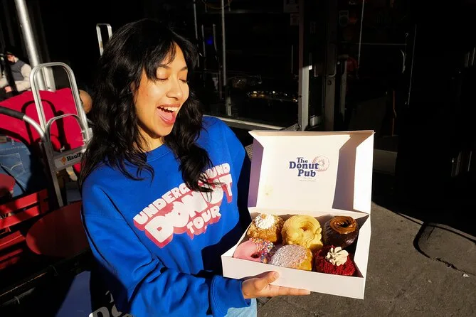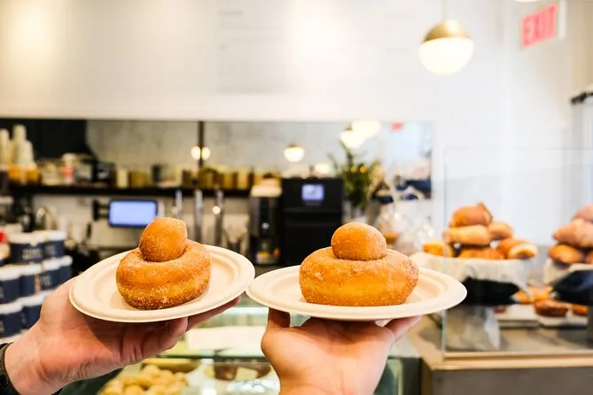 O seu dia inclui caminhadas guiadas por Union Square e Greenwich Village, degustação de bombolone italiano na Unregular Bakery, donuts clássicos de uma padaria histórica desde 1964 e um último doce de brioche na Mah-Ze-Dahr Bakery antes de se despedir das ruas vibrantes de Manhattan.