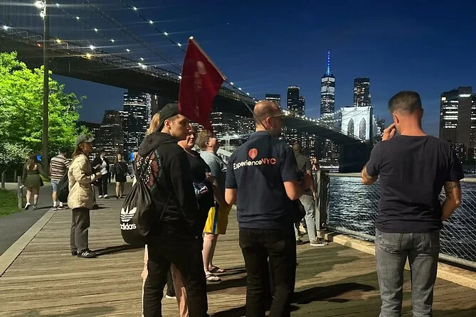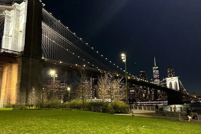 Sua noite inclui transporte com pickup em Hell’s Kitchen, histórias guiadas por um profissional local durante 3 horas em ônibus de luxo climatizado, tempo para fotos e pausa para banheiro em DUMBO antes de voltar para Manhattan ao final da noite.