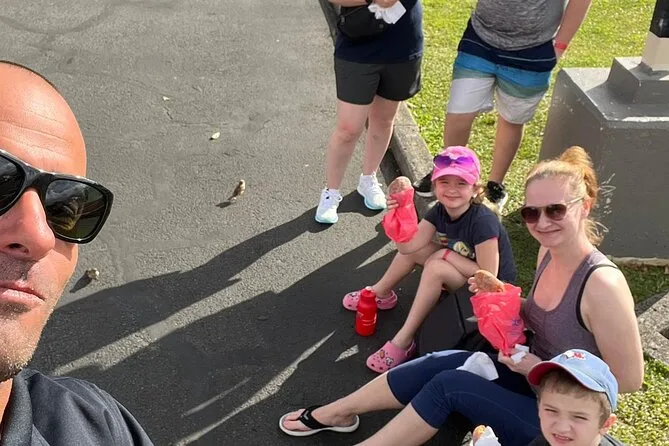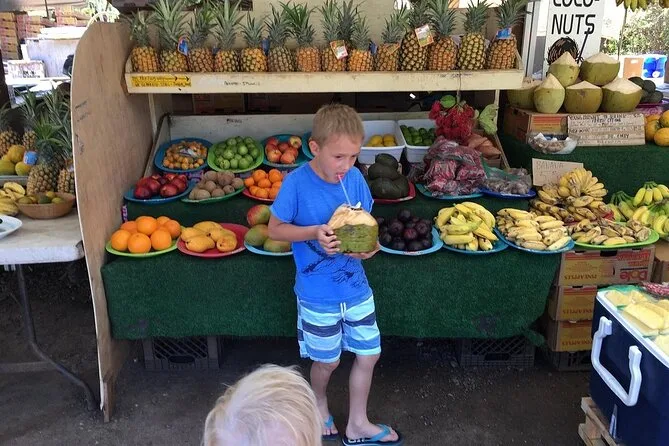 Não esperava gostar tanto do almoço, mas sério? O camarão com alho naquela fazenda sob as montanhas Koʻolau ainda me vem à cabeça. Keoni nos levou por plantações de taro e explicou como aquelas terras alimentam famílias locais — tinha algo muito real em ouvir ele falar enquanto o cheiro de terra e alho frito pairava no ar. Depois paramos numa barraca de frutas, onde provei água de coco gelada direto do coco — bagunçado, mas valeu a pena.