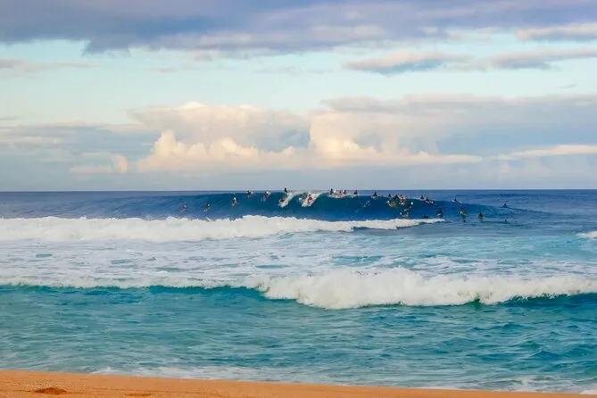 Você vai dar a volta na maior parte de Oahu num minibus com grupo pequeno — snorkel com tartarugas na North Shore, café Kona sob árvores banyan, almoço com camarão numa fazenda local e sorvete de abacaxi na Dole Plantation. Transporte do hotel incluso e guia local em cada parada, garantindo momentos reais (e pés cheios de areia) durante o dia.