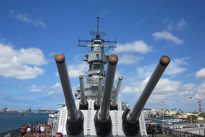 Seu dia inclui transporte ida e volta em Waikiki, todos os ingressos (Torre de Controle da Ford Island e USS Missouri), água mineral durante o passeio, narração com guia local e almoço no Hangar Cafe antes do retorno em veículo com ar-condicionado.